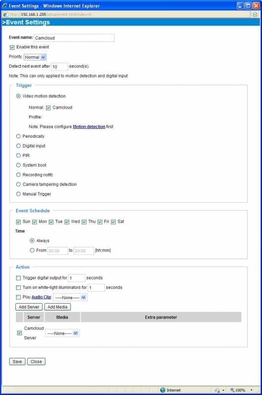 One extra special note of importance. You may find that your videos are quite small, in the range of 3-4 secs. Vivotek allows 10 sec videos but they bump up quality settings so it ends up being too big to send. You can go to the Audio and video tab and change Stream profile 2 settings. A quick example would be to set the