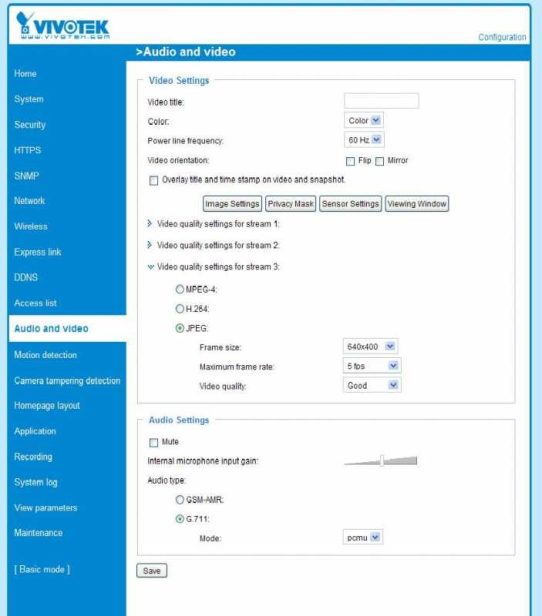 One more thing to do. You need to configure the Vivotek MJPEG stream to be used for the Camcloud Live View. We need to change stream profile 3 to handle that. Go to the “Audio and video” tab.