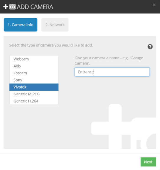 Click on “Add Camera”, select “Vivotek”, and pick your model. Name your camera whatever you’d like.