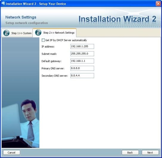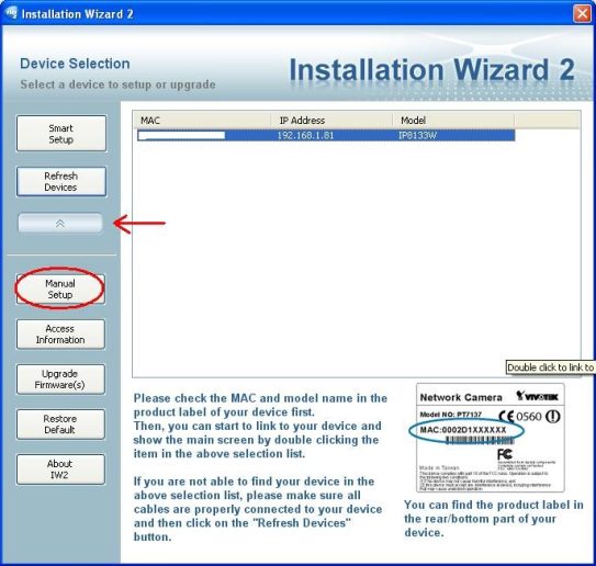 The quickest way to get the camera on your network is through their Software utilities and click on Installation Wizard 2 (twice). This should install a program on your computer.