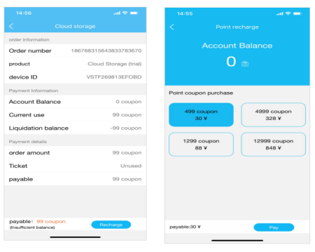 After successful top up the tickets, the APP will jump back to the renewal page. Click the “Renewal” button and choose a package you prefer and pay for it. After successfully paid for it, the cloud service will be activated and the camera will record video when it detect motion and upload the videos to the server.