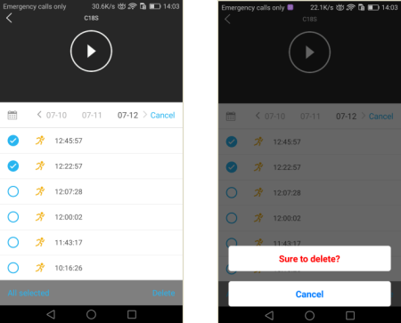 Open the APP home page, click the three dots on the upper right corner of the camera, and select “TF Card Records” to view the recording files in the SD card. Click the calendar icon to select the date; Click the “Edit” button on the right to select the video files you want to delete, tap the “delete” option on the lower right corner, after confirming, the video files can be deleted.