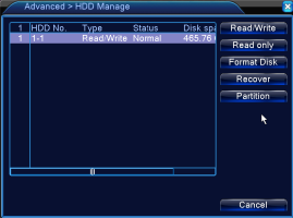Partition: Partition your hard drive. Click on it to go to HDD partition. Two types of partitions: Record Partition, Image Partition. Note: Please format the hard disk before record.