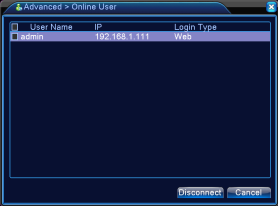 You can check all users who are connected to the DVR from Online User. You can choose any user(s) and click disconnect to stop the connection, if you do this, the user(s) will be able to log into the system again only after you reboot your DVR.