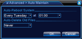 User can schedule the time for automatic system reboot, or automatic deletion on the old recorded files.