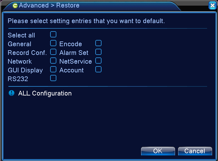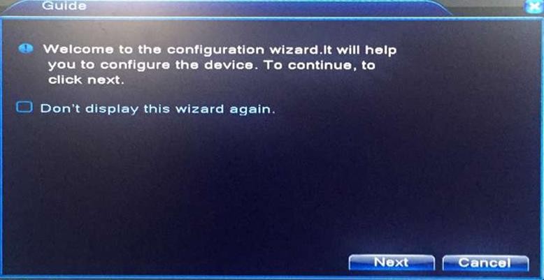 Check this box if you do not wish to get the wizard box each time you turn on the DVR. But it is recommended that you do not do so.