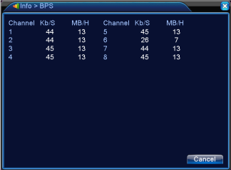 Display the Bit Rate (Kb/S) and the spaced used (MB/H) in real time.