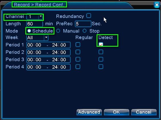 Step 1 Go to Record Config., choose the Channel, then choose Schedule and check the box for Detect.