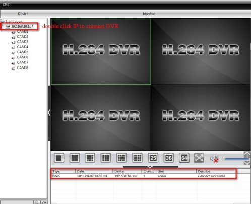 Click OK to save the settings. After that, you can double click on the device to access the DVR.