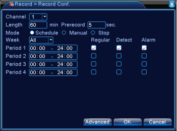 【Manual】Channel camera will record continuously after you set it at Manual.