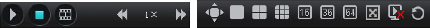 As shown in the figure, the device list is on the left side, displaying all devices added currently and the online and offline status of device. PTZ control interface and video parameter control interface are on the right side. Below the video parameter control interface is the split screen switch button, with which, user may manually switch the number of split screens according to the actual demand. Split screen modes include standard split and wide-screen split, corresponding to different window scales.