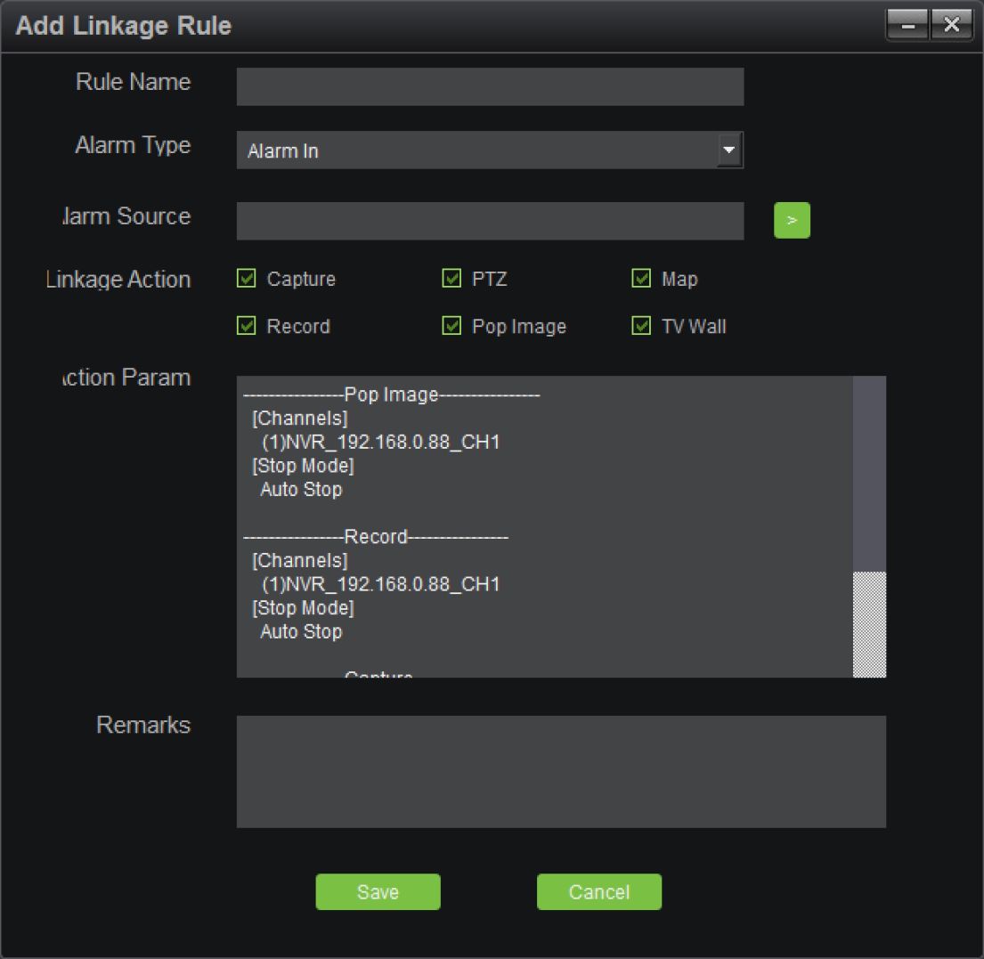 | Rule Name | Alarm Type | Alarm Source | Remarks | Enable | Description |