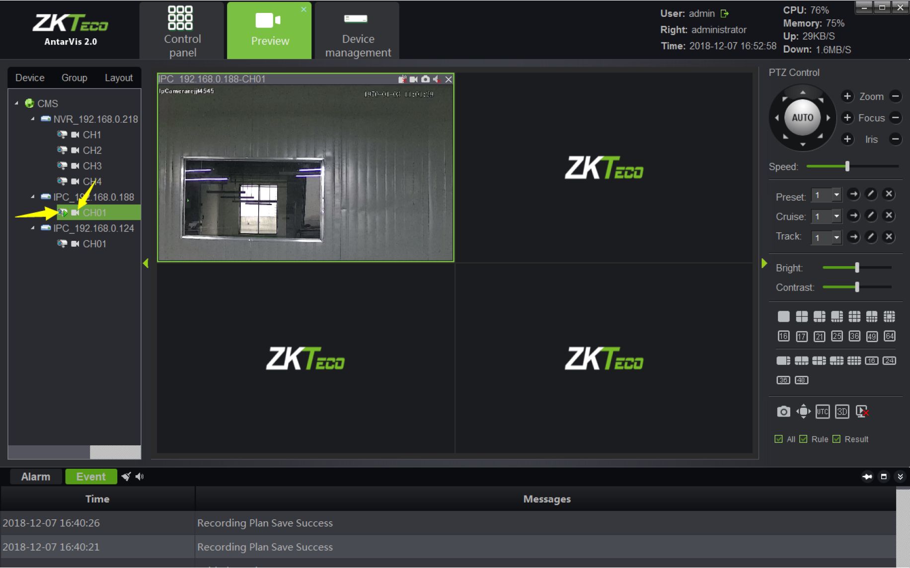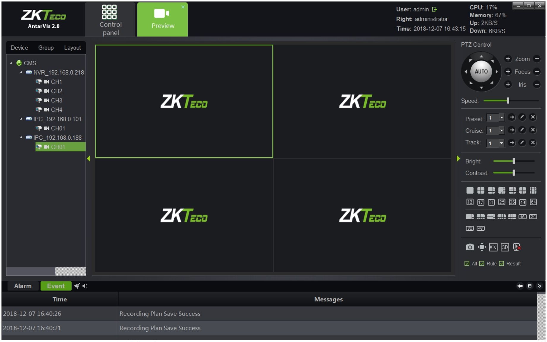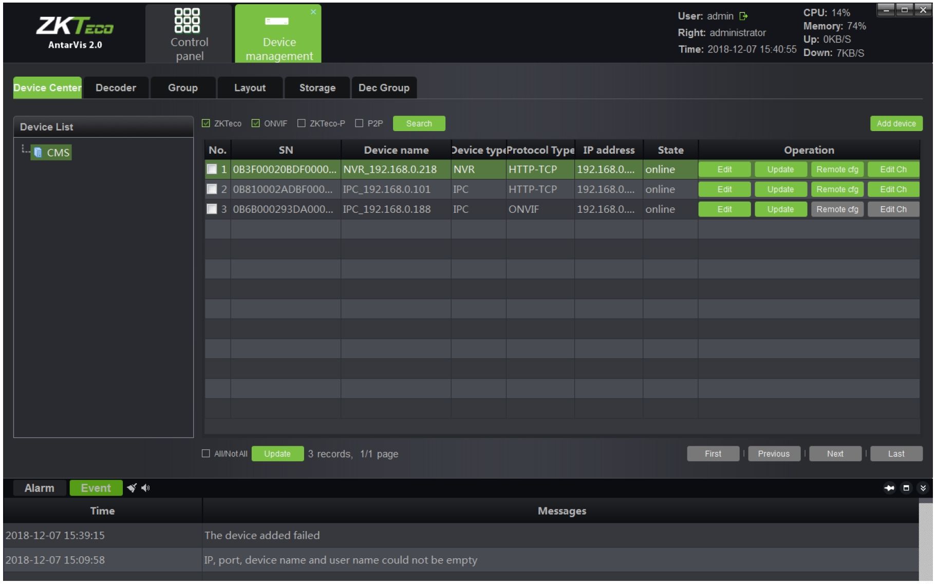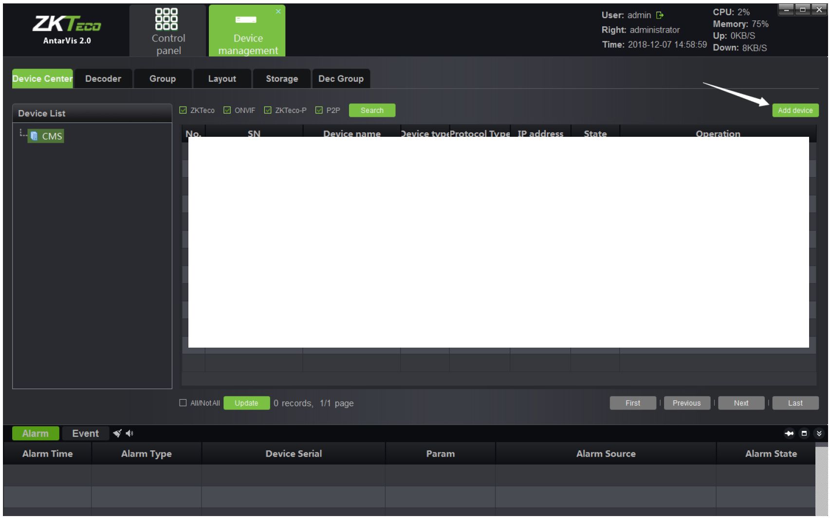 AntarVis2.0 currently supports four protocols including active ZKTeco, ONVIF ,ZKTeco-P and P2P.