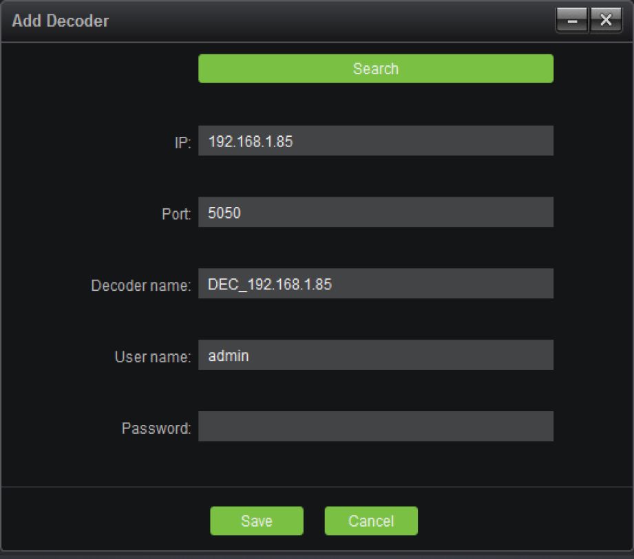 Click on “Search” to search for all online decoders in the LAN; similarly, the decoder added to the