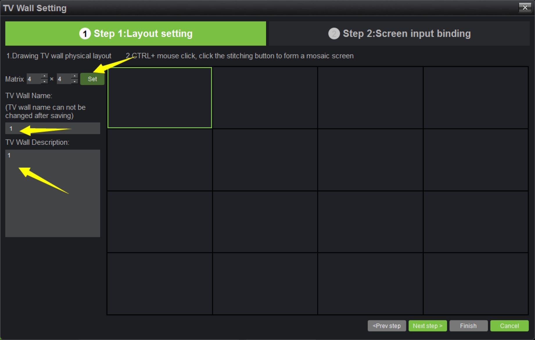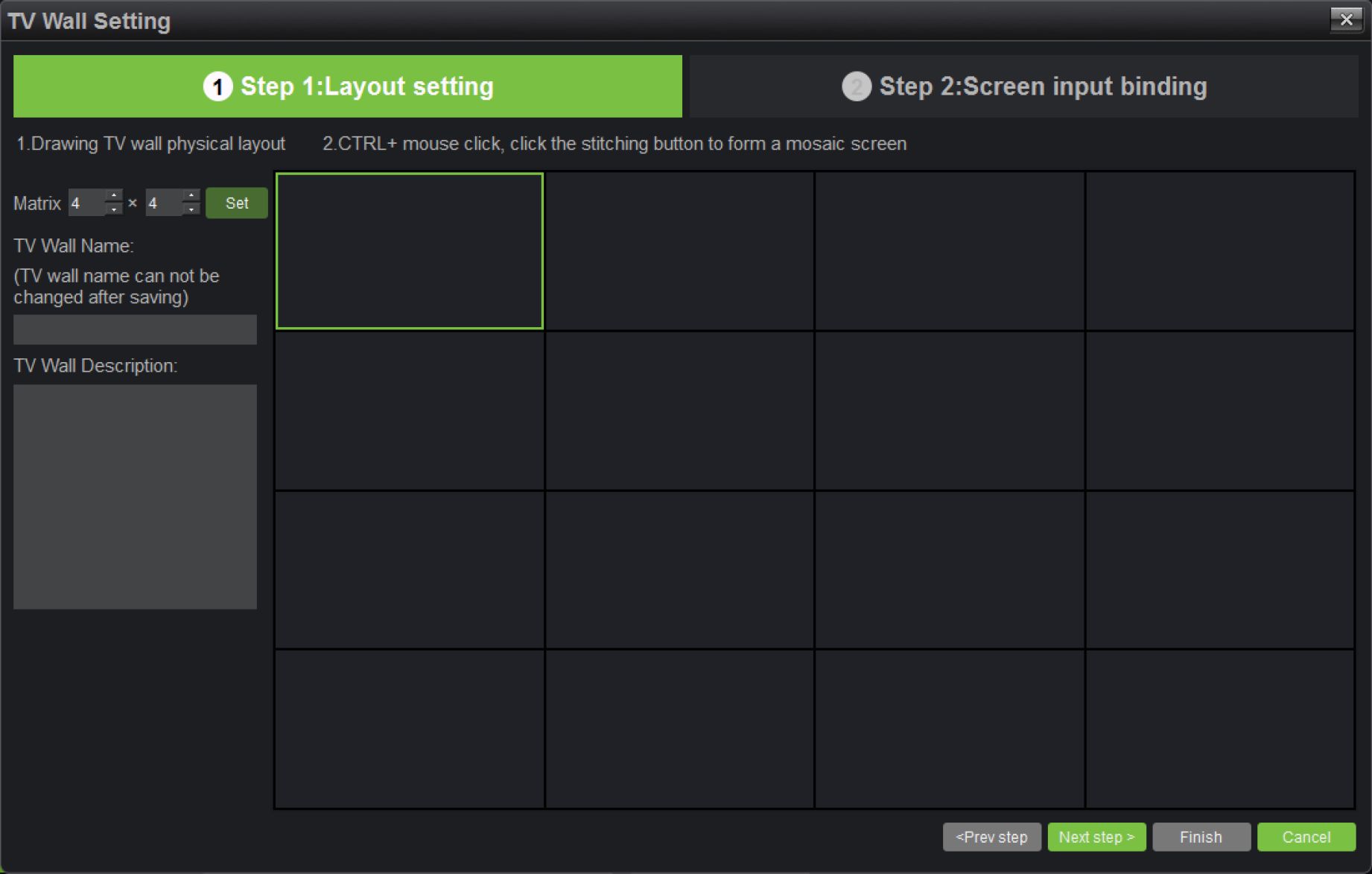 Firstly, drop-down the check box in the signed place of the figure to select TV wall. All rules set and enabled will be shown in this box. Select a scheme.